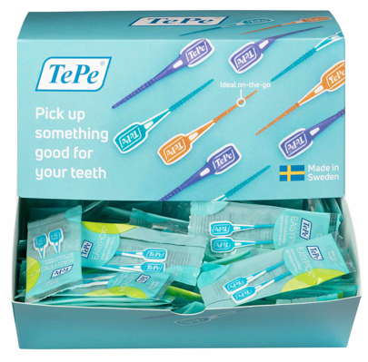 TePe® EasyPick Dispenserbox M/L blå tandstickor, 200x2 st
